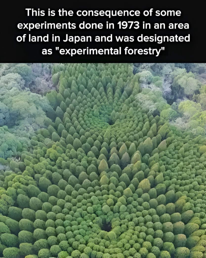 It’s truly mind-blowing! 🤯 In 1973, a special forestry experiment started near Nichinan City in Japan. Scientists wanted to see how the spacing between trees affects how they grow. It was a simple idea, but the result turned out to be amazing to look at.