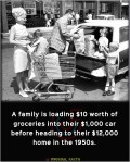 - A Look Back:1950s Cost of Living💰 Dollar Differences: The 1950s Cost of Living Shock! 🤯 Time Machine Prices 🕰️ The image of a family in the 1950s loading $10 worth of groceries into their $1,000 car before heading to their $12,000 home paints a fascinating, if slightly skewed, picture of post-war American affordability. While the figures are close, the real… Read more: A Look Back:1950s Cost of Living